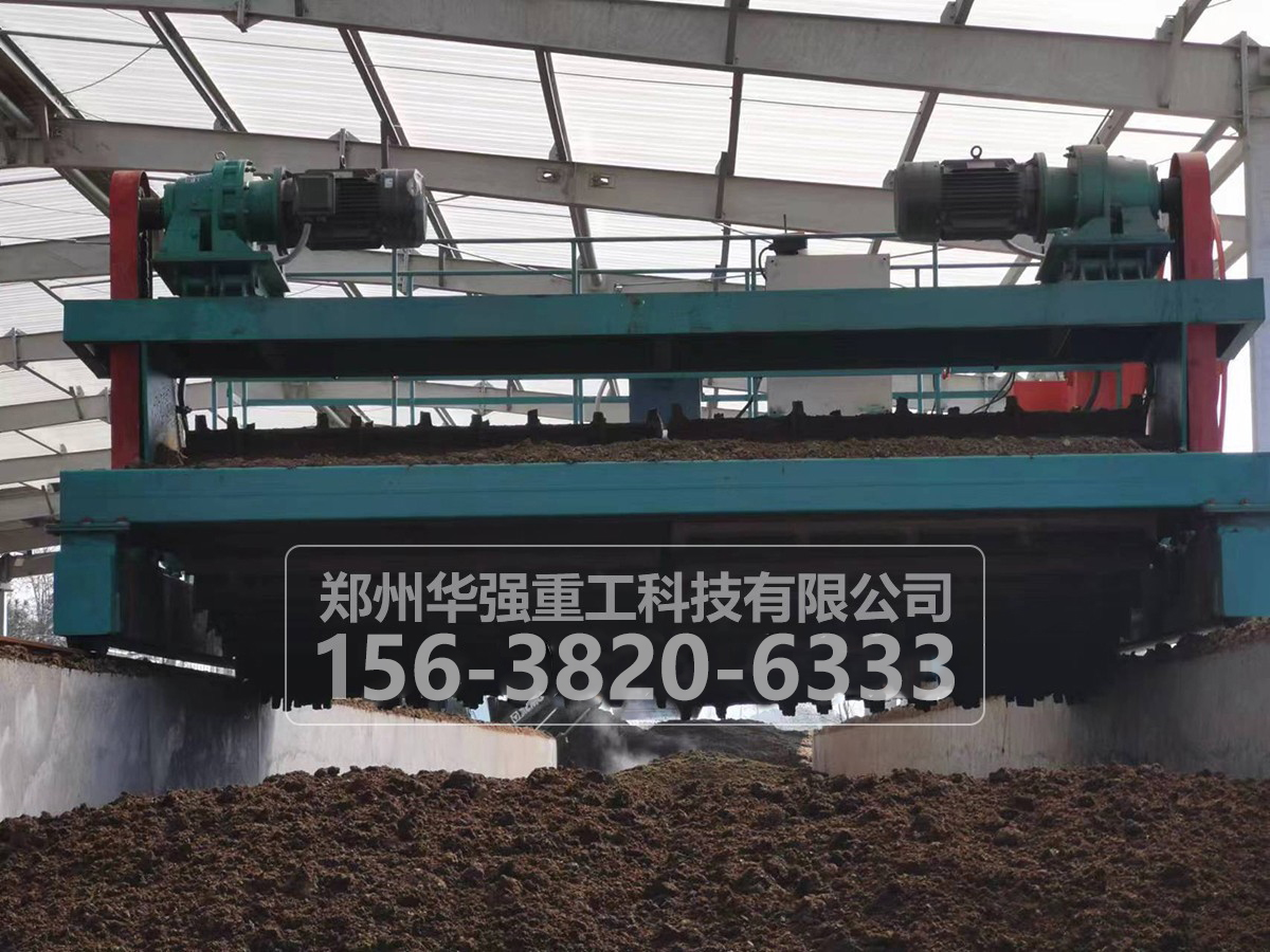 ②有機(jī)肥設(shè)備鏈板翻堆機(jī)單體發(fā)酵設(shè)備跨度更大,翻拋尺度更深。