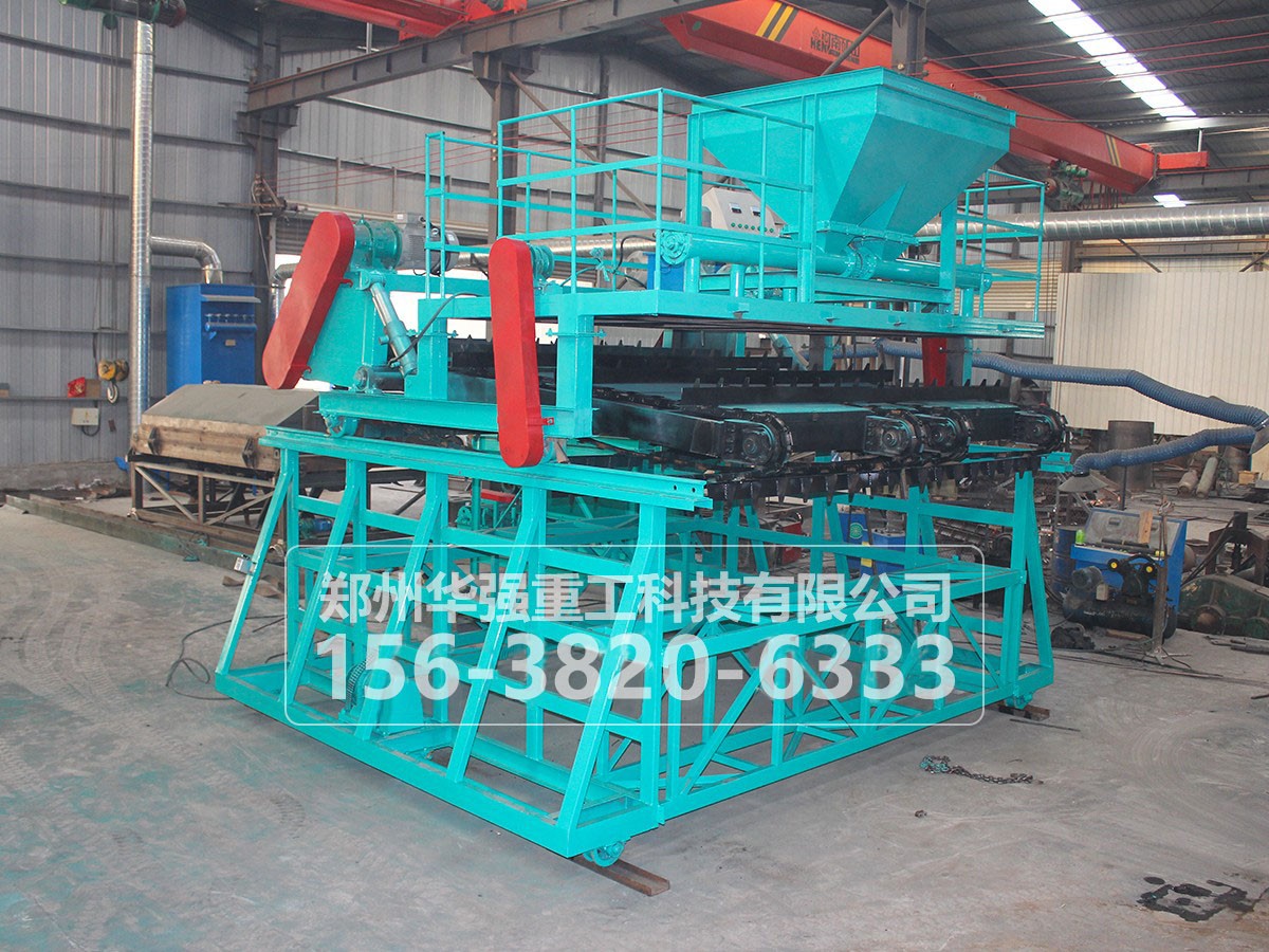 整機工作架置于發(fā)酵槽上,可沿槽上軌道縱向前后行走。翻拋小車置于工作架上,翻拋部件和液壓系統(tǒng)安裝在翻拋小車上。工作架到達指定的翻拋位置時,翻拋小車的翻拋部件經(jīng)由液壓系統(tǒng)操縱緩慢深入槽中,翻拋部件(鏈板)開始連續(xù)轉(zhuǎn)動,并隨工作架整體沿槽前進。翻拋部件不斷攫取槽內(nèi)物料并斜向輸送到工作架后方落下,落下的物料重新置堆。沿槽完成一個行程的作業(yè)后,液壓系統(tǒng)將翻拋部件抬升到不與物料干涉的高度,工作架整體連同小車后退至發(fā)酵槽翻拋作業(yè)的初始端。如果是寬槽,翻拋小車橫向朝左或右移動一個鏈板幅寬的距離,然后放下翻拋部件深入槽中,開始另一幅物料的翻拋作業(yè)行程。每個發(fā)酵槽翻拋次數(shù)取決于發(fā)酵槽的寬度,一般一個槽寬2~9m,每個槽完成全部翻拋需要分別進行1~5作業(yè)行程(循環(huán)),直至完成全槽翻拋作業(yè)。