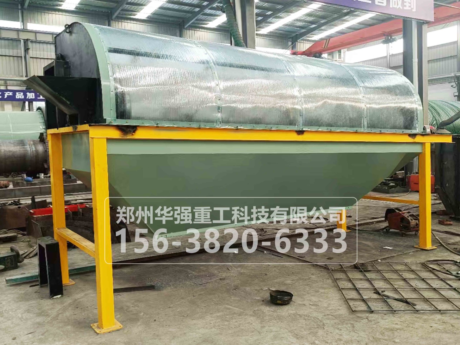 2.傳動(dòng)篩分部分:該部分均采用組合式篩網(wǎng),其由傳動(dòng)輪通過聯(lián)軸器傳至主軸,該篩網(wǎng)安裝與焊接在主軸的滾籠上。物料從進(jìn)料端進(jìn)入,在滾籠不斷回轉(zhuǎn)、分級(jí),從下方出料口均勻流出,其有效地將成品與返料分離,從而提高工作效率;